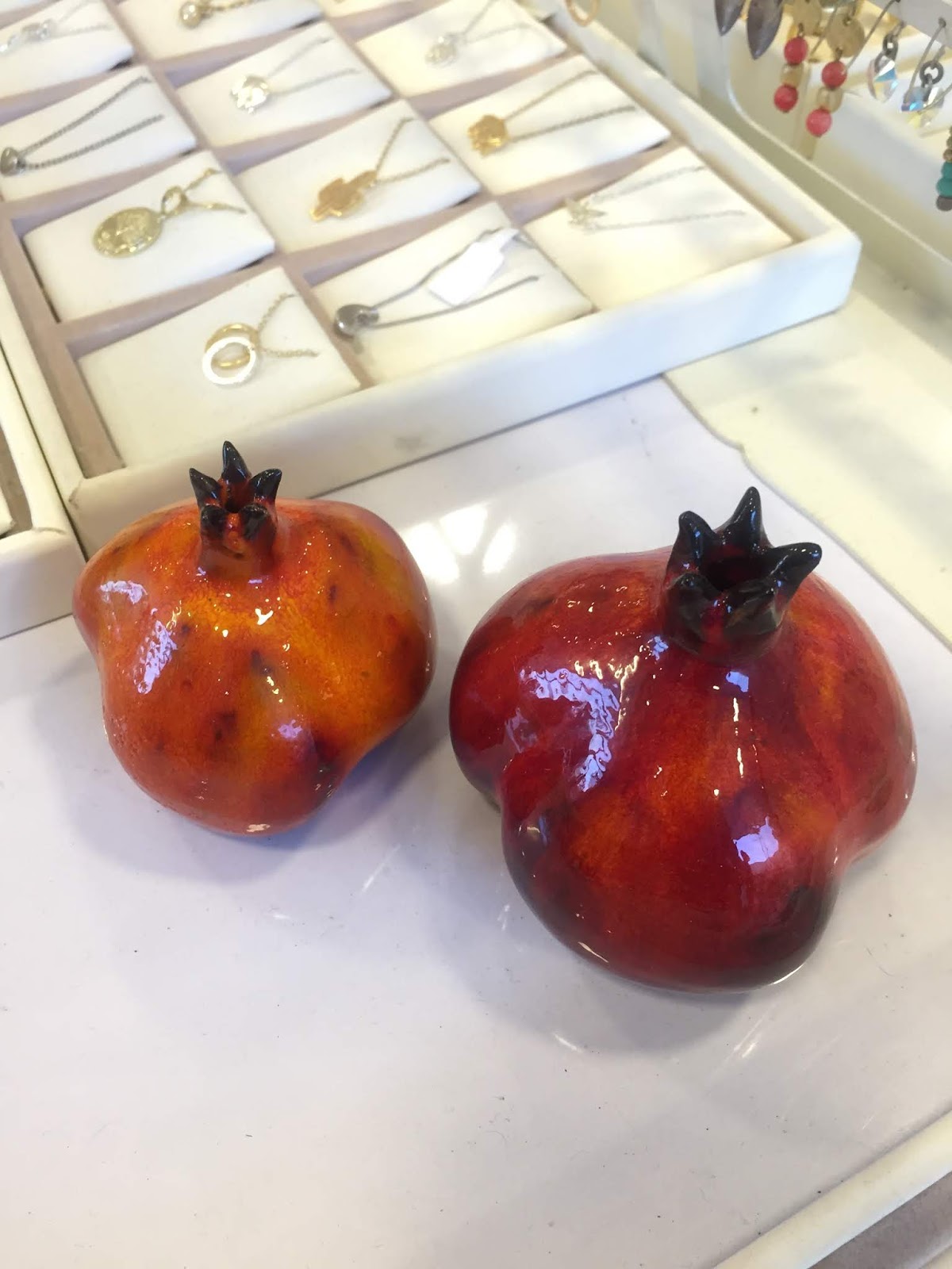 Обычно я достаточно спокойно отношусь к любого рода сувениром, но эти израильские гранаты покорили мое сердце! Во время путешествия, мы видели их в самом разнообразном исполнении!